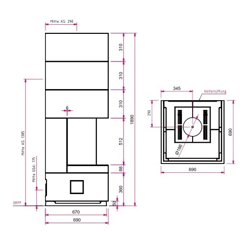 | Maße Grundgerät ca (H x B x T) (mm) | 1890 x 690 x 690 |
