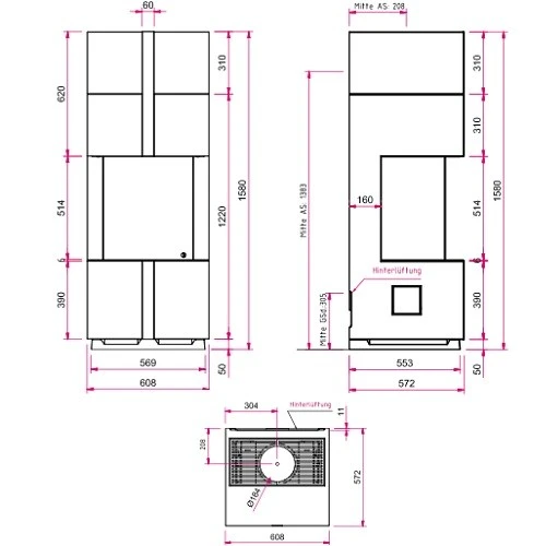 | Rauchrohranschluss | oben, hinten |