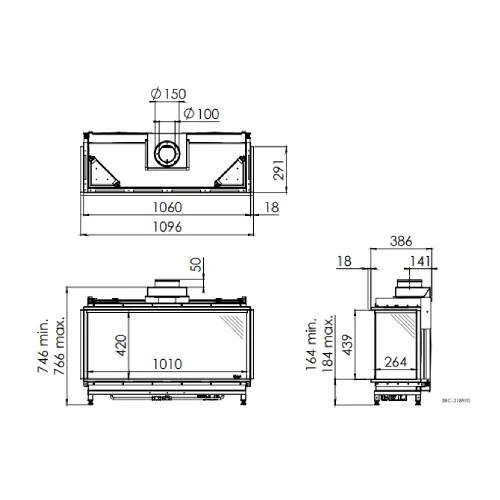 | Maße Sichtscheibe ca (H x B) (mm) | 420 x 1010, 420 x 264 |