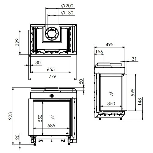 | Maße Sichtscheibe ca (H x B) (mm) | 550 x 585, 550 x 350 |