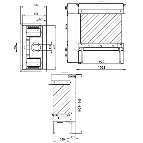 | Sichtscheiben | Panoramakamin: 3 Scheiben, dreiseitige-Kamine |