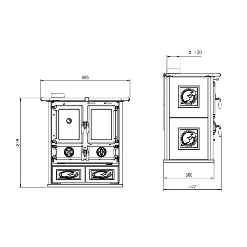 Der Holzherd La Nordica Rosetta Sinistra BII Steel bietet flexible Anschlussmöglichkeiten für das Rauchrohr – sowohl oben als auch hinten. Mit einem Durchmesser von 130 mm für das Rauchrohr garantiert er eine effiziente und sichere Rauchableitung. Darüber hinaus steht La Nordica für Qualität und Sicherheit: Dieser Holzherd ist nicht nur mit dem CE-Zeichen versehen, sondern erfüllt auch die Normen von EcoDesign, EN 12815, BlmSchV und 15a B-VG. Damit entspricht er höchsten europäischen Standards und sorgt in Ihrem Zuhause für ein sorgenfreies Wärmeerlebnis.