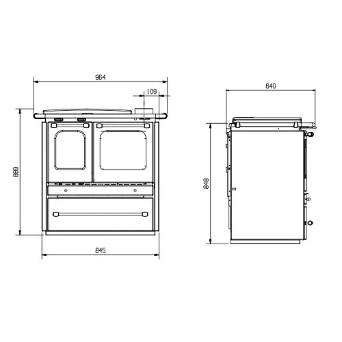 Mit einem Gewicht von 166 kg und kompakten Maßen von 889 x 964 x 640 mm lässt sich dieser Holzherd leicht in verschiedene Raumgestaltungen integrieren. Die Sicherheitsabstände hinten / seitlich / Strahlungsbereich von 150 / 150 / 1000 mm gewährleisten eine sichere und einfache Installation.