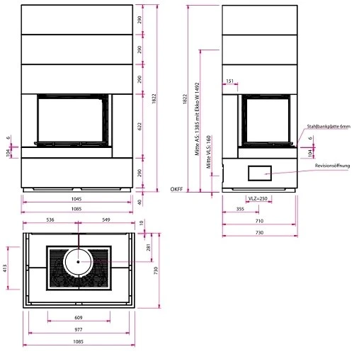 Kaminbausatz CAMINA S10 rechtsseitig 9 kW (14,9 kW) Speicheranlage