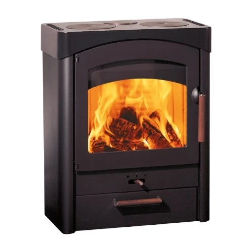 Der Kaminofen Pallas aus dem Hause Austroflamm lässt mit seiner Leistung von 9 kW und vielen nützlichen Funktionen kaum Wünsche offen. Dieses Modell besticht nicht nur mit seinem klassischen Design im Landhaus-Stil, das es zum perfekten Begleiter in Wohnküchen, Zweitwohnungen oder Wochenendhäusern macht. Denn es verfügt zudem über 3 Herdplatten, auf denen sich leckere Gerichte zubereiten lassen, und das ganz ohne Strom. Dabei regeln Sie die Temperatur durch die Menge des aufgelegten Feuerholzes und den Luftschieber. Auch der Blick auf das prasselnde Feuer kommt nicht kurz, dafür sorgt die großzügig dimensionierte Sichtscheibe. Dank einer integrierten Scheibenspülung genießen Sie einen weitgehend ungetrübten Blick. Der Pallas ist wirklich ein optisches Highlight, denn seine Ausstattung mit feinen Gestaltungsdetailsaus Holz setzen geschmackvolle Akzente, die ganzjährig auch außerhalb der Heizperiode erfreuen.