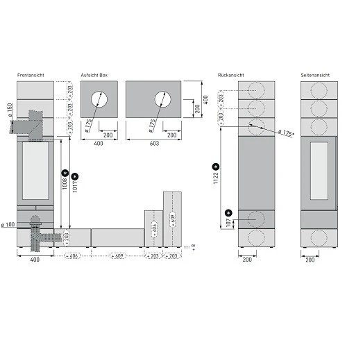 | Rauchrohranschluss | oben, hinten, seitlich |