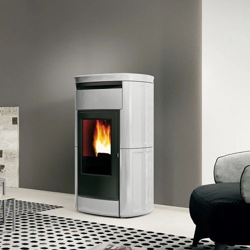 Der Pelletofen Kira von Edilkamin verfügt über mehrere wählbare edle Keramikverkleidungen in Weiß, Rot und Pergamentfarben. Mit Hilfe eines zweiten Ventilators zur Erzeugung von Warmluft, kann der Edilkamin Kira die erzeugte Wärme durch einen Kanalisierungsanschluss an der Rückseite des Gerätes in einen angrenzenden Raum verteilen. Das Kit für die Wärmeverteilung können Sie im individuellen Zubehör bestellen.