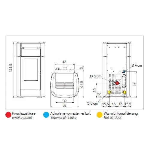 Der Pelletofen Vyda2 Evo von Edilkamin verfügt über edle Keramik- (Weiß und Dunkelgrau) und Natursteinverkleidungen. Mit Hilfe eines zweiten Ventilators zur Erzeugung von Warmluft, kann der Edilkamin Vyda2 Evo die erzeugte Wärme durch einen Kanalisierungsanschluss an der Rückseite des Gerätes in einen angrenzenden Raum verteilen. Das Kit für die Wärmeverteilung können Sie im individuellen Zubehör bestellen.