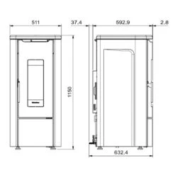 - Rauchrohranschluss hinten: 80 mm