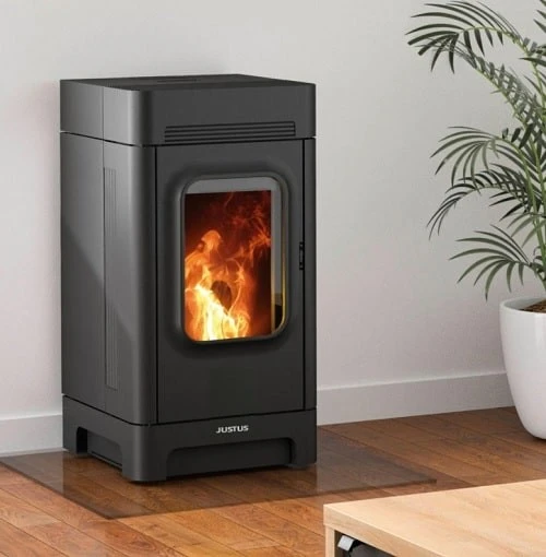 Ein Pelletofen dosiert die benötigte Menge an Pellets selbst, d.h. Sie müssen nicht ständig Holz nachzulegen wie beim klassischen Kamin. Zudem überzeugen Pelletöfen als pflegeleichte und umweltfreundliche Heizquellen. Ein weiterer Unterschied ist, dass Sie hier die gewünschte Zieltemperatur festlegen können. Außerdem lässt sich der Ofen per Steuerung sofort stoppen. Mit dem Justus Pelletofen Canis mit 6,4 kW genießen Sie auch weiterhin wohlige Wärme und eine gemütliche Atmosphäre.