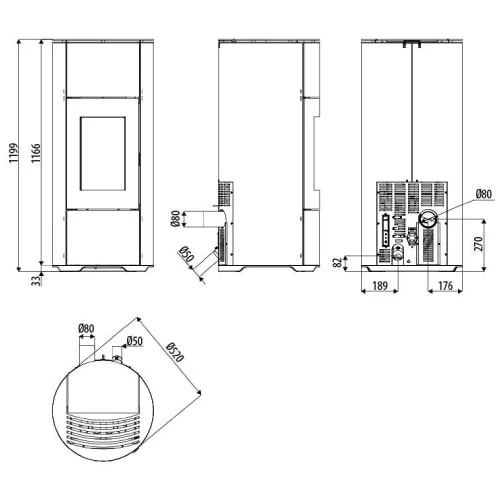 – Hohes Fassungsvermögen des Aschekastens für wöchentliche Ascheentleerung. Es erlaubt eine Woche Betrieb des Ofens ohne Entleerung (bei einem durchschnittlichem Verbrauch von 8 Stunden täglich).