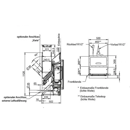 Pellet Kachelofeneinsatz Wodtke PE Nova Einbaugerät water+ 8/10kW wasserführend